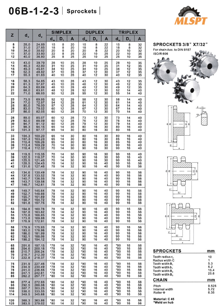 SPROCKETS 3/8” X 7/32”