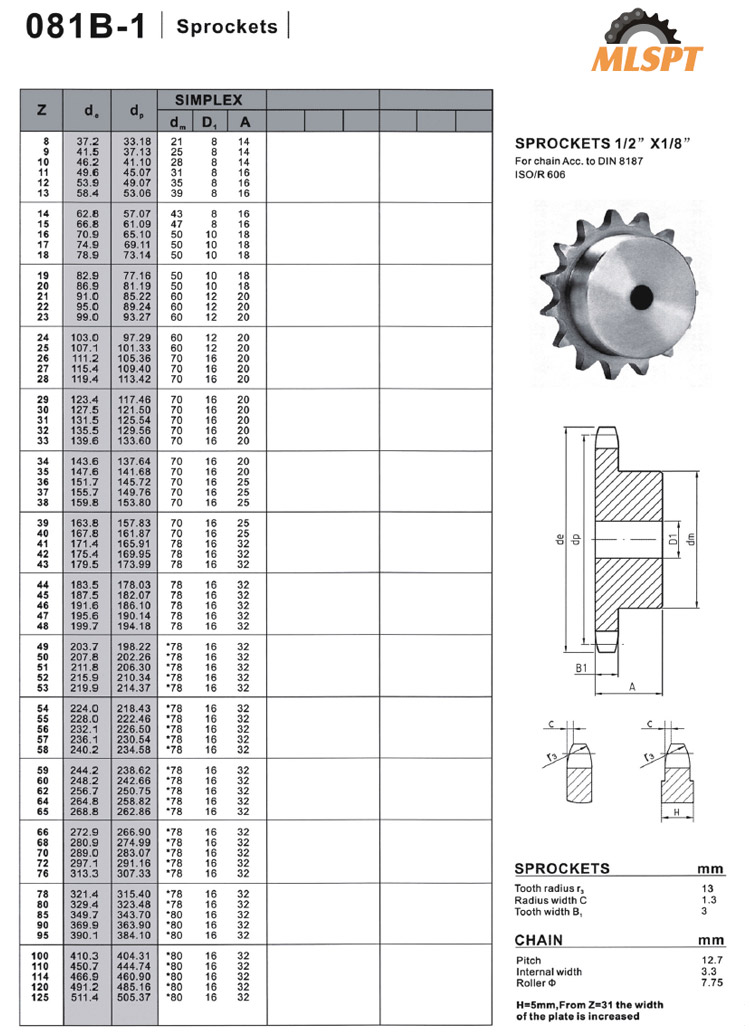 SPROCKETS 1/2” X 1/8”